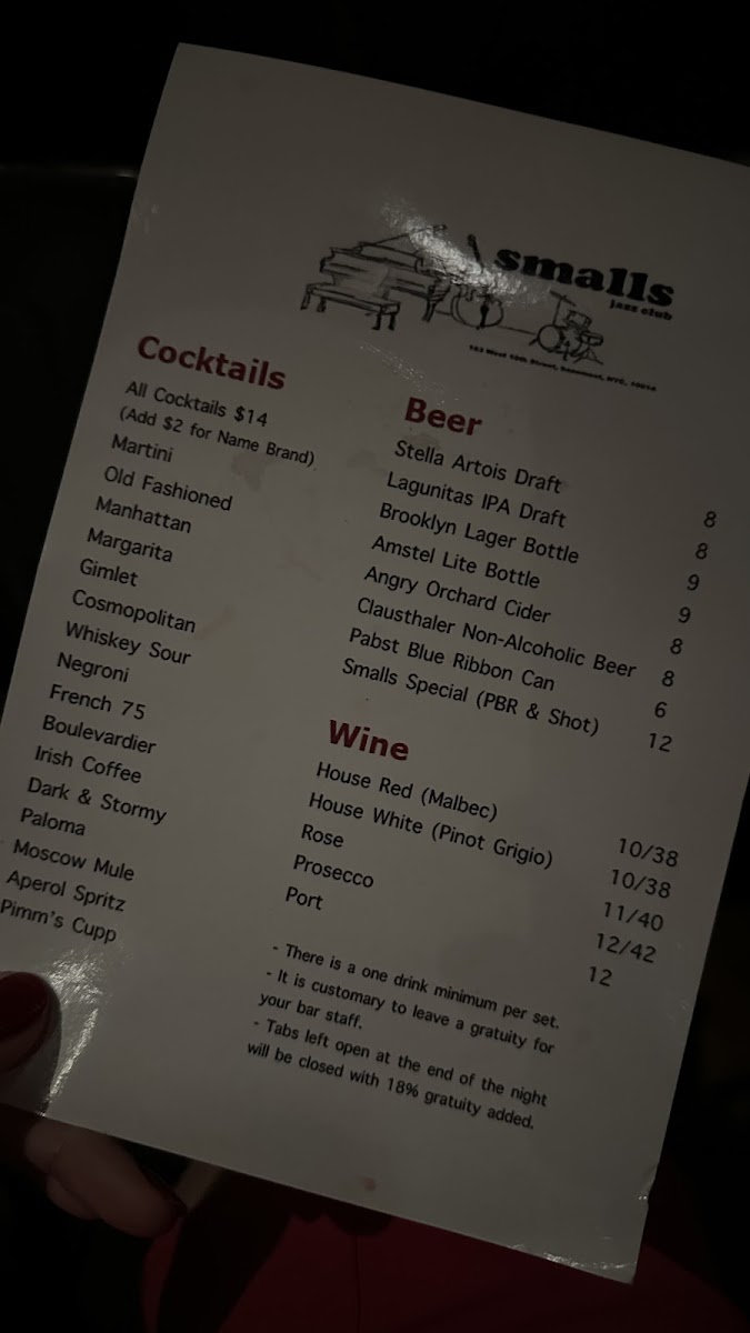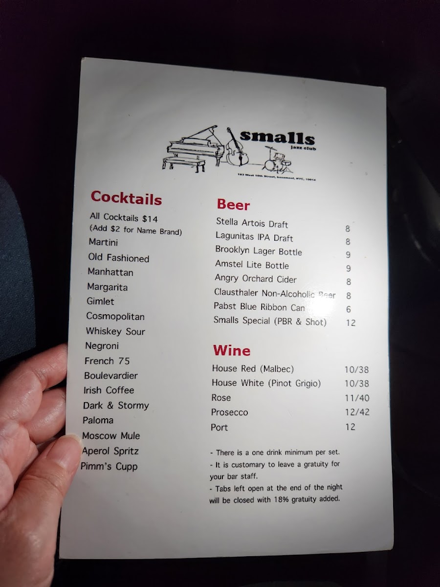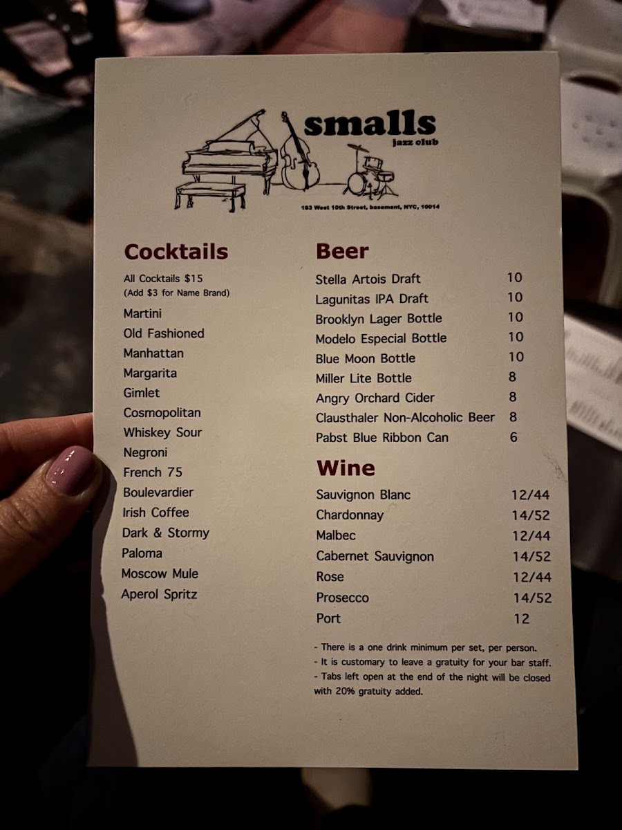 Although Smalls is known for its luxurious sounds rather than its culinary offerings—there are no grand plates to savor—customers like Tanya M certainly appreciate the simple availability of snacks like mixed nuts and olives. It's a no-fuss environment where the main focus is on the music, and each visit feels like a rich, sensory journey.