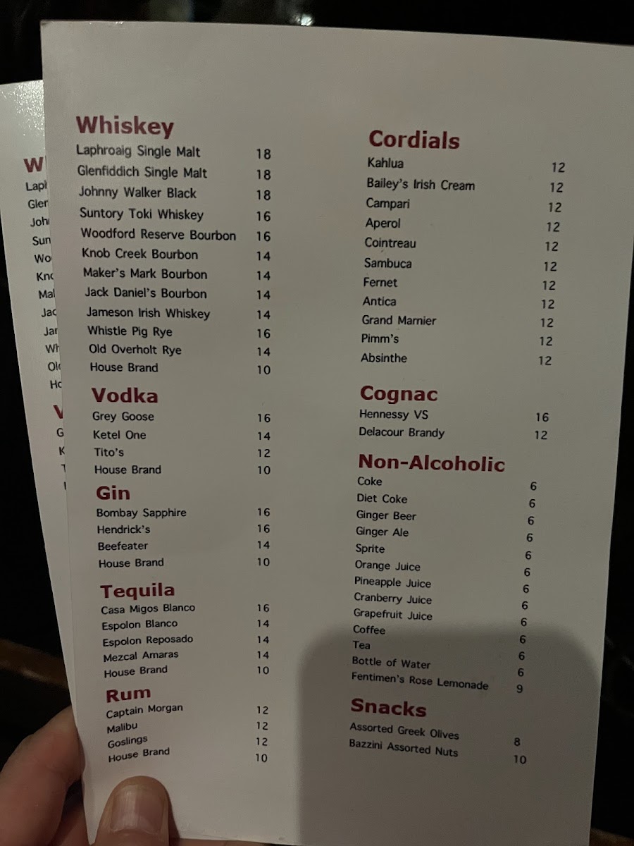 While enjoying the melodic escapades, you can sip on a curated selection of wines and liquors. With options like Malbec from Argentina or Pinot Noir from France, there’s something to complement every note. Their liquor offerings include renowned brands like Tito’s and Belvedere Vodka as well as quintessential cordials like Baileys and Amaretto, making it easy to find a drink that suits your palate during the performances.